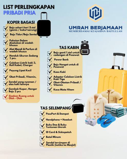 Saat Anda akan melakukan perjalanan umrah, kami ingin memastikan Anda telah mempersiapkan segala sesuatu yang Anda butuhkan dengan baik.